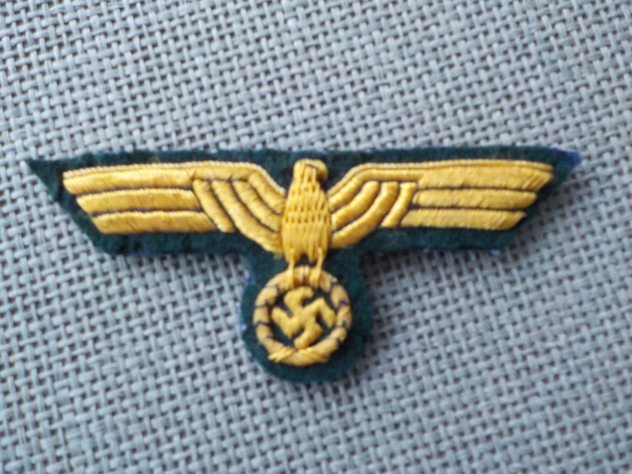BOTTOM Prewar flatwire bevo breast eagle removed from tunic , £65.00